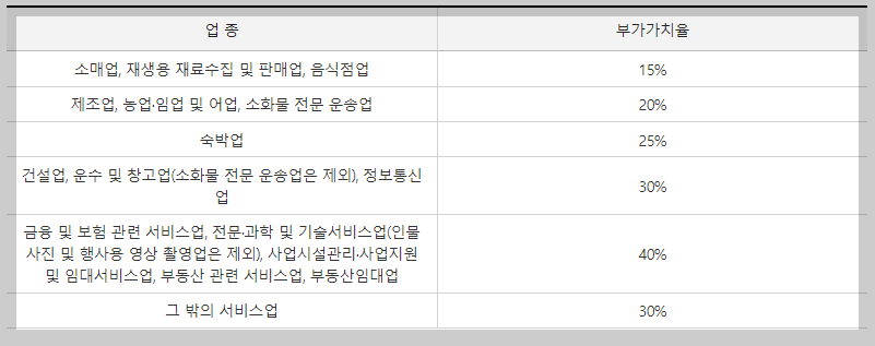 ■ 일반과세자 부가가치율
