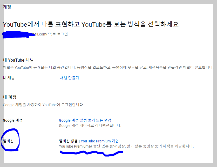 유튜브 화면 오른쪽 상단을 누름> 설정이 나오면 누름 > 설정 누르면 하단의 멤버십에 유튜브 프리미엄 가입 누르기 |
